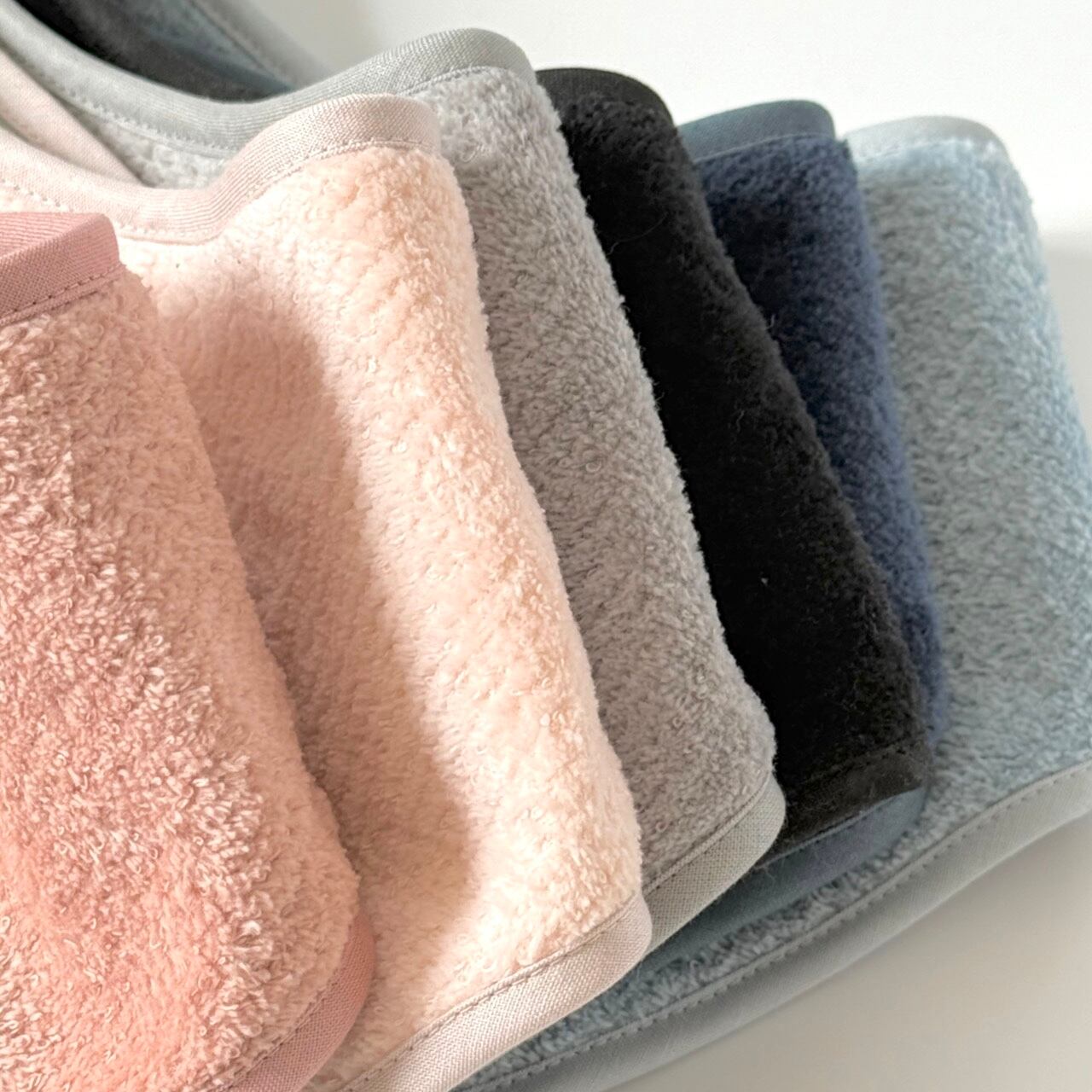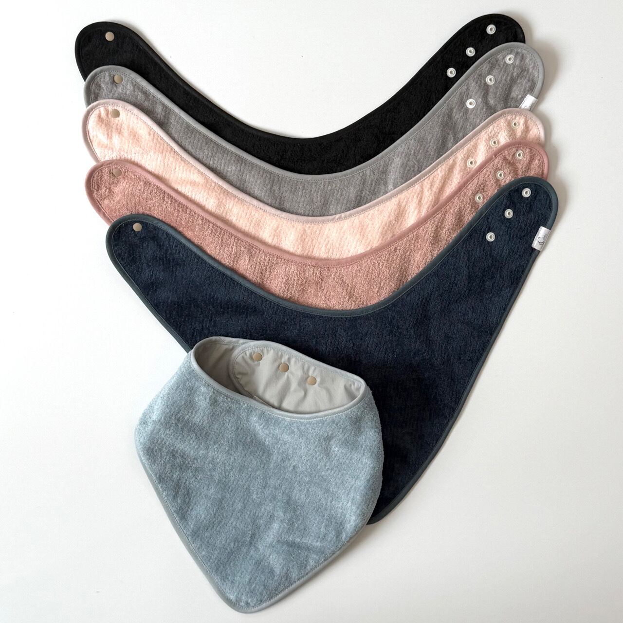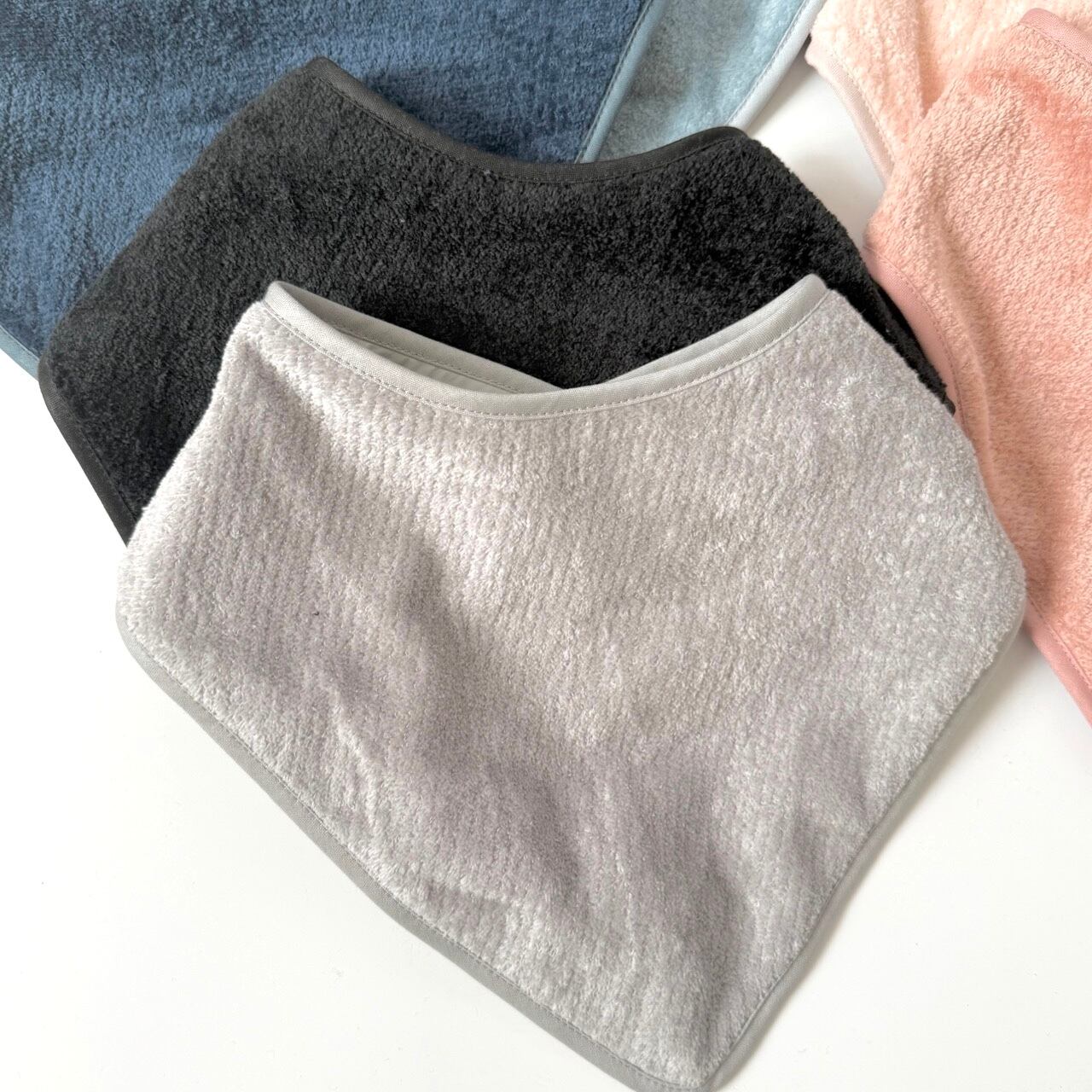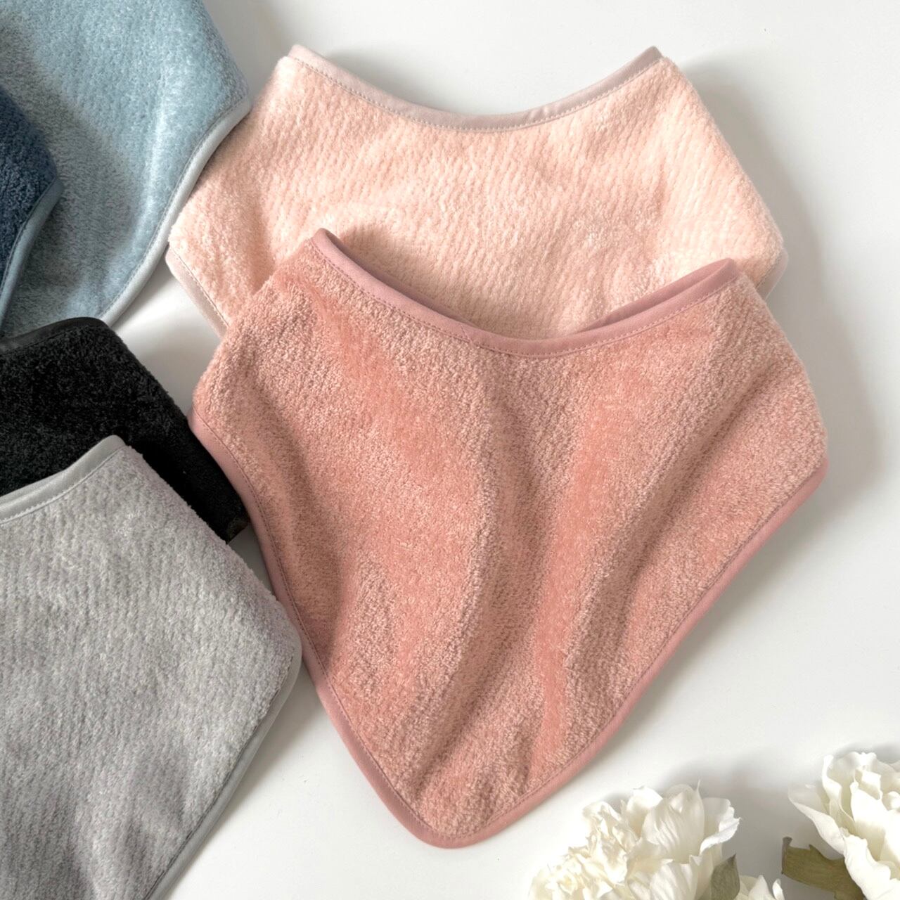 おしゃれを楽しめるようなバンダナ型、雰囲気のある色合いのタオル地スタイです。