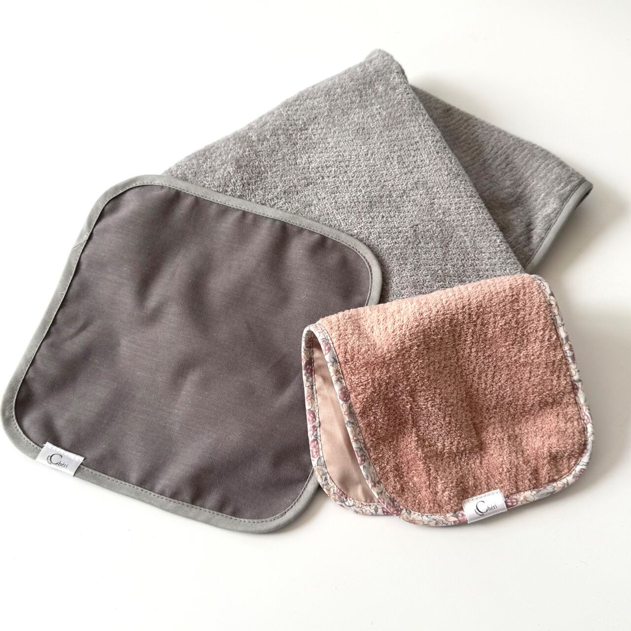 防水タオルSサイズ縁取りをリバティに変更して製作しました。